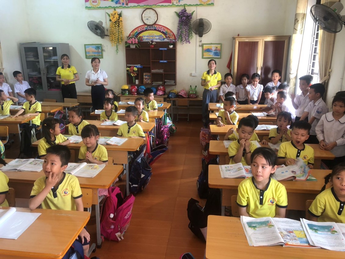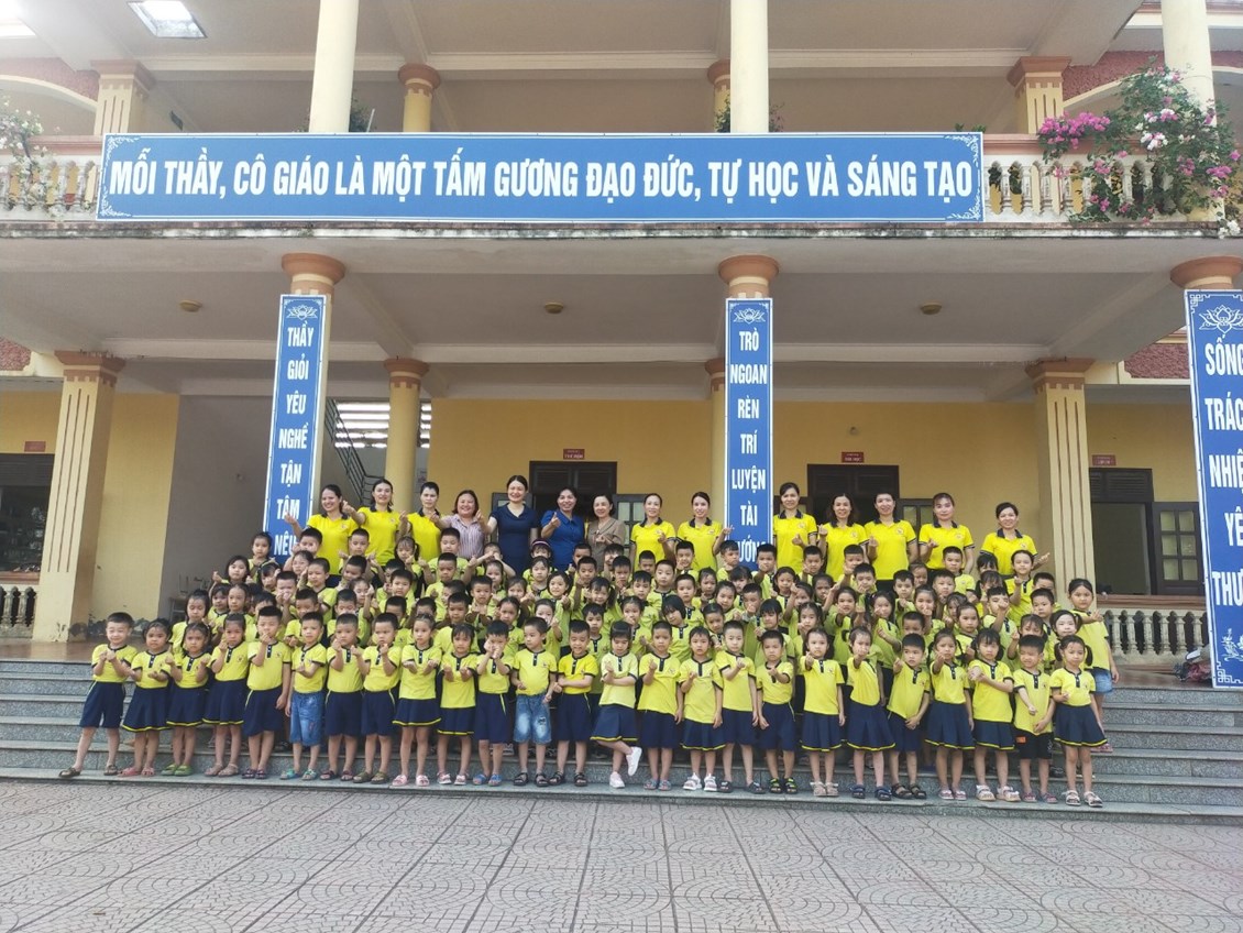 Chính vì nhận thức rõ được tầm quan trọng của việc chuẩn bị tâm thế sẵn sàng cho trẻ 5-6 tuổi vào lớp 1 và cũng để thực hiện tốt nhiệm vụ năm học, thực hiện tốt nội dung chương trình chăm sóc giáo dục trẻ, nội dung “Tổ chức thực hiện các hoạt động giáo dục lấy trẻ làm trung tâm thông qua trải nghiệm với bối cảnh địa phương”. Sáng ngày 19 tháng 5 năm 2023 được sự nhất trí của trường Mầm non Vinh Quang đã tuyên truyền, phối hợp với Phụ huynh, cùng trường Tiểu học Vinh Quang tổ chức thành công chuyến tham quan, trải nghiệm cho các con học sinh khối 5- 6 tuổi tại Trường Tiểu học Vinh Quang.